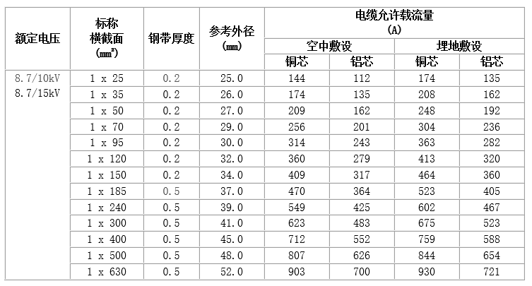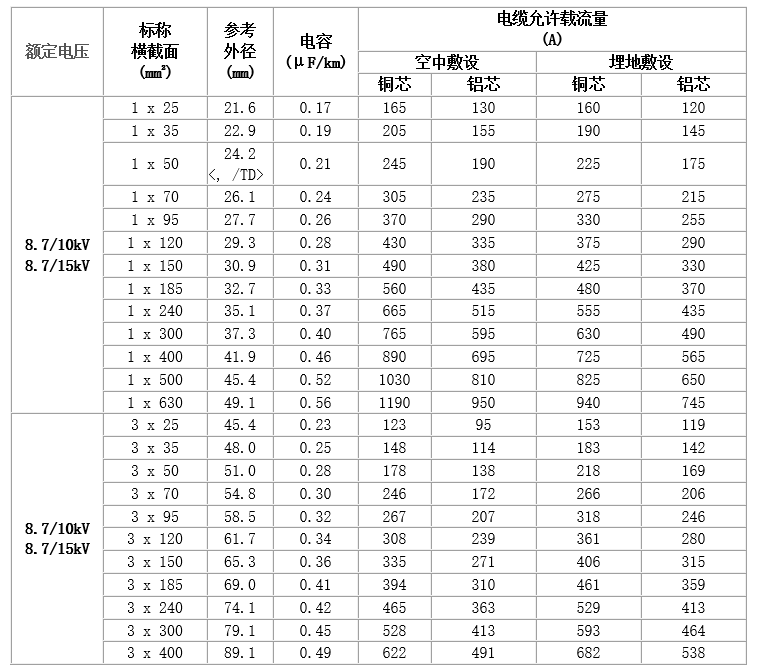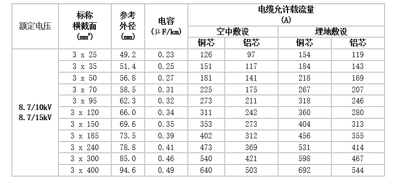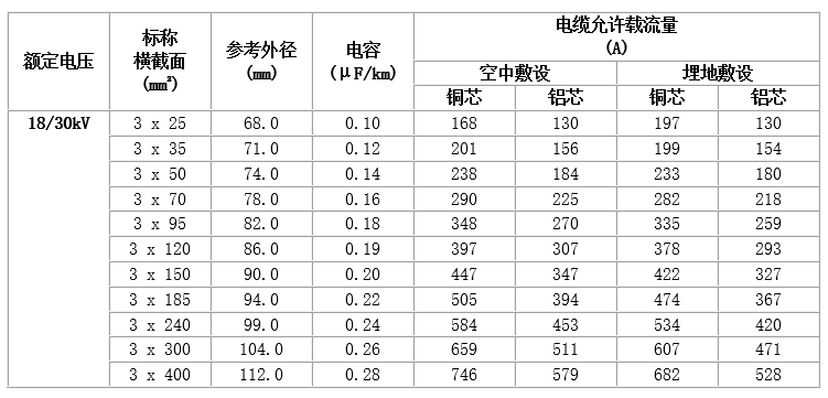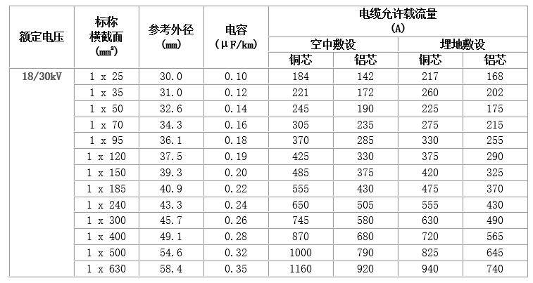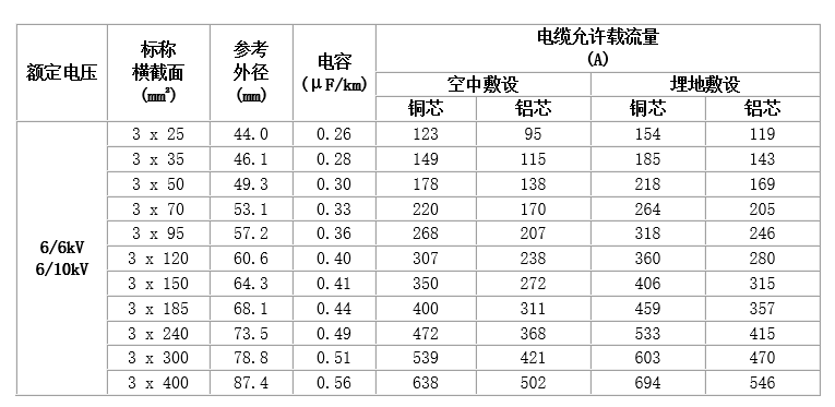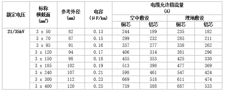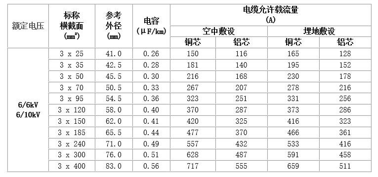 6~35kV交聯聚乙烯絕緣電力電纜,主要技術參數如下: